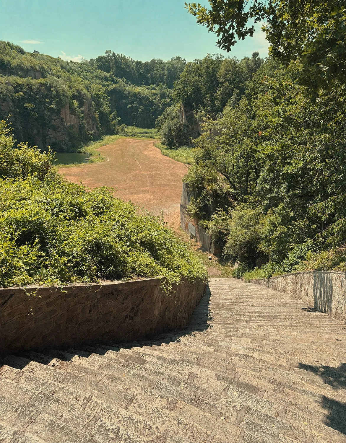 Als ich an einem Frühsommernachmittag des Jahres 2025 über die Stufen der „Todesstiege“ in den Steinbruch „Wienergraben“ hinabsteige, liegt der Besuch des KZ Mauthausen bereits hinter mir. Es ist brütend heiß und außer mir haben sich nur zwei andere hierher verirrt, die gemeinsam den riesigen Platz zwischen den Felswänden, hin und wieder stehenbleibend, deutend, fotografierend, schweigend abgehen.