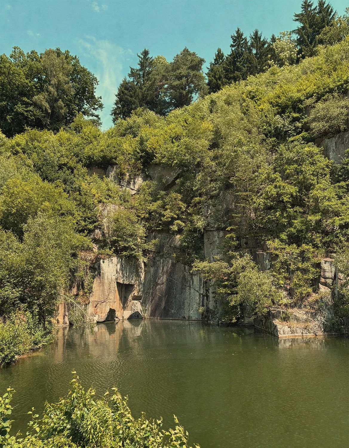 Im Steinbruch steht die Luft. Es ist still, kein Vogel singt, kein Rauschen der nahen Bundesstraße dringt nach unten. In den Jahren seit der Befreiung des KZ im Mai 1945 hat sich eine sanfte, grüne Vegetationsdecke über die einstmals kargen Felswände gelegt, nur hier und da lugen zwischen den Blättern die Granitblöcke wie Mahnungen aus einer bösen Zeit hervor.